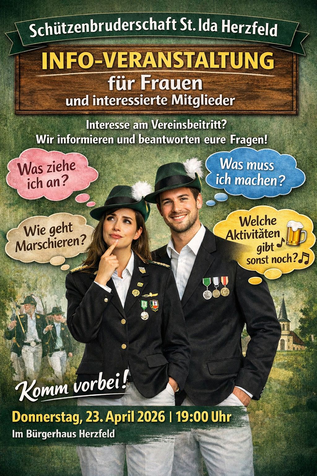 Damals noch gegründet als Herzfelder Krieger und Landwehr Verein und zum Schutz der Bevölkerung berufen, ist heute eher die Bewahrung der Tradition, Zusammenhalt und Pflege der Gemeinschaft Hauptaufgabe.
